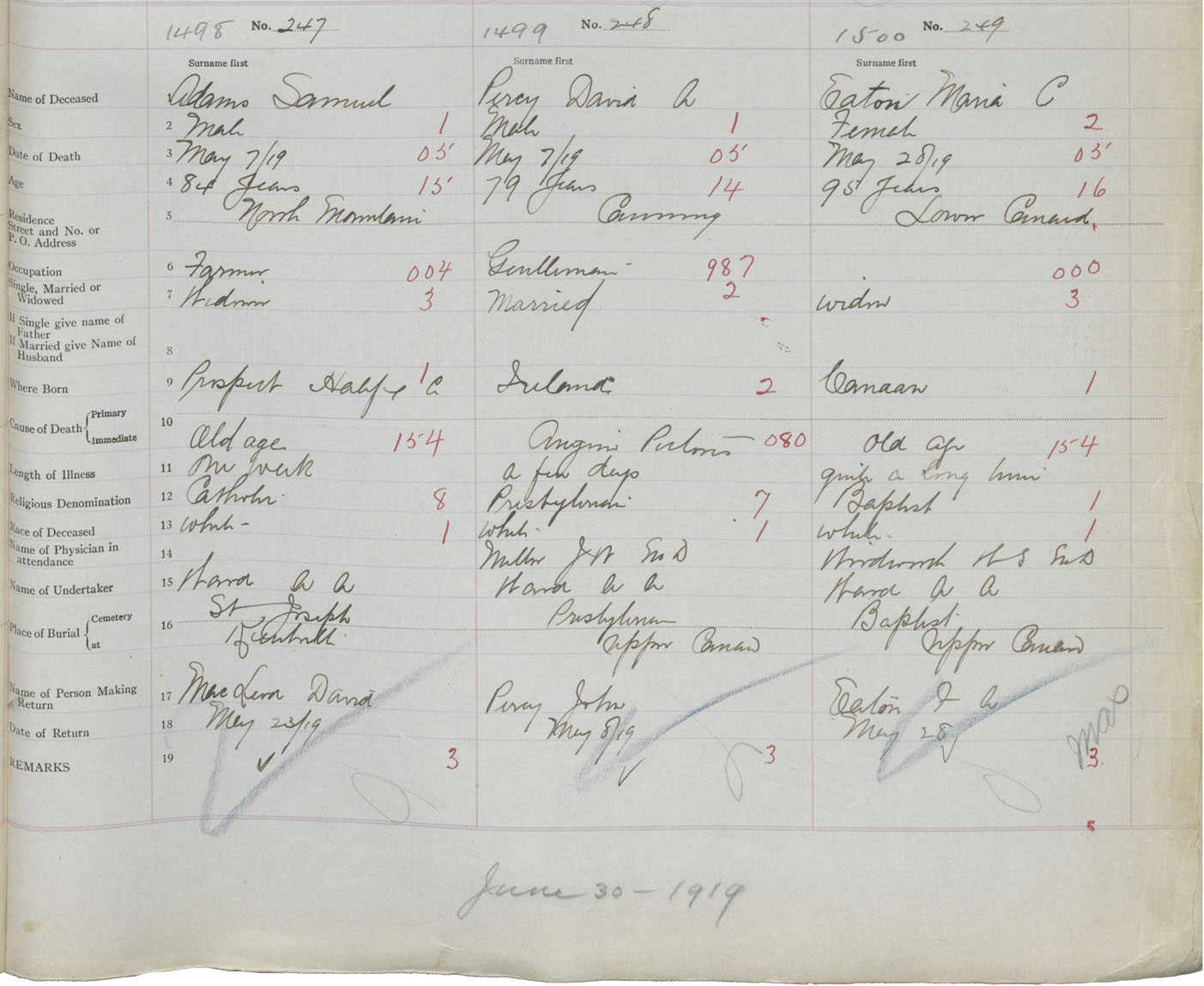 Male Death Registration: Year: 1919 book: 40 page: 497 number: 1498