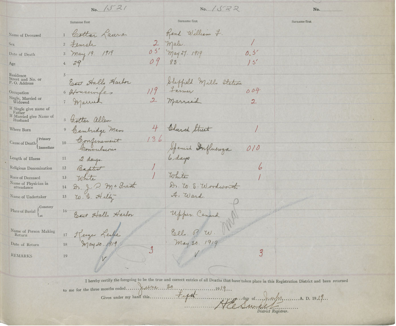 Female Death Registration: Year: 1919 book: 40 page: 505 number: 1521