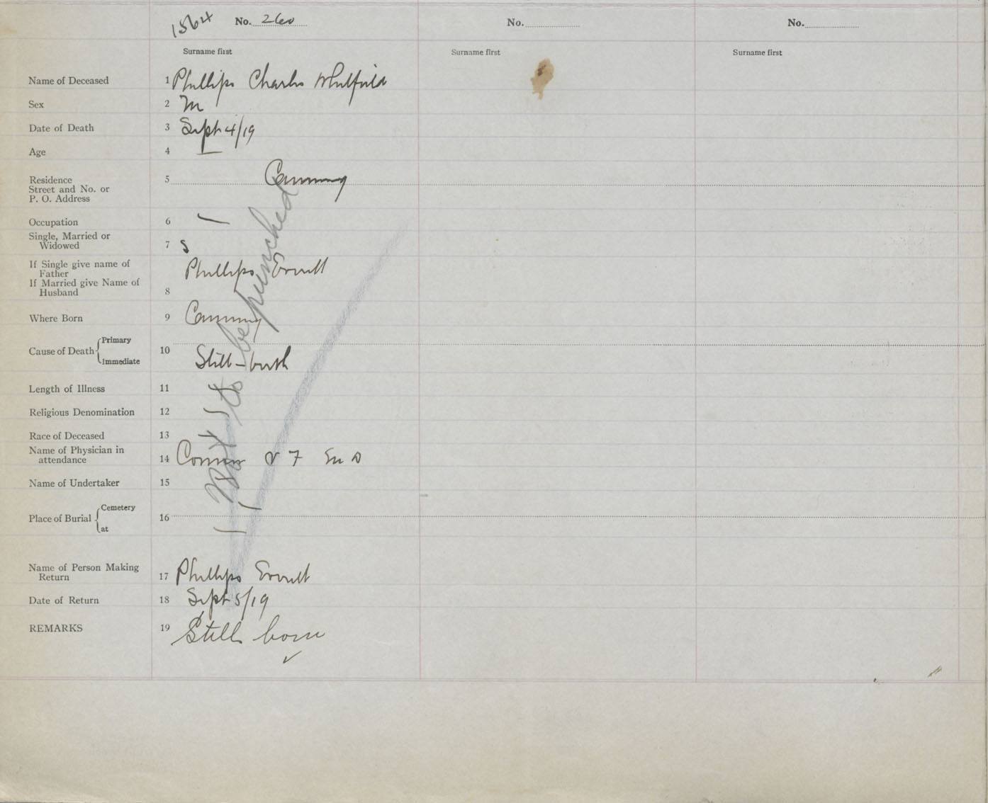 Male Death Registration: Year: 1919 book: 40 page: 520 number: 1564