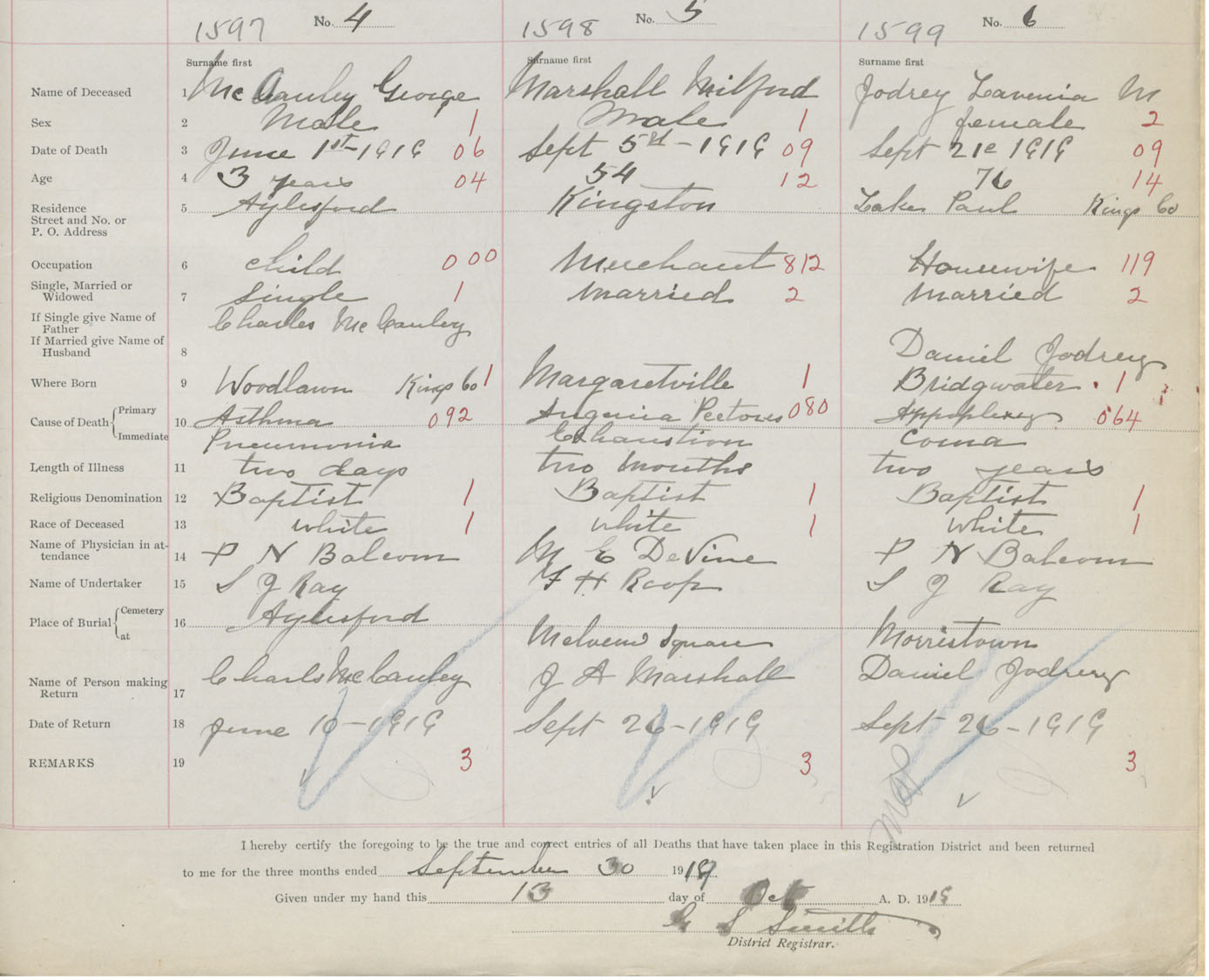 Male Death Registration: Year: 1919 book: 40 page: 531 number: 1597