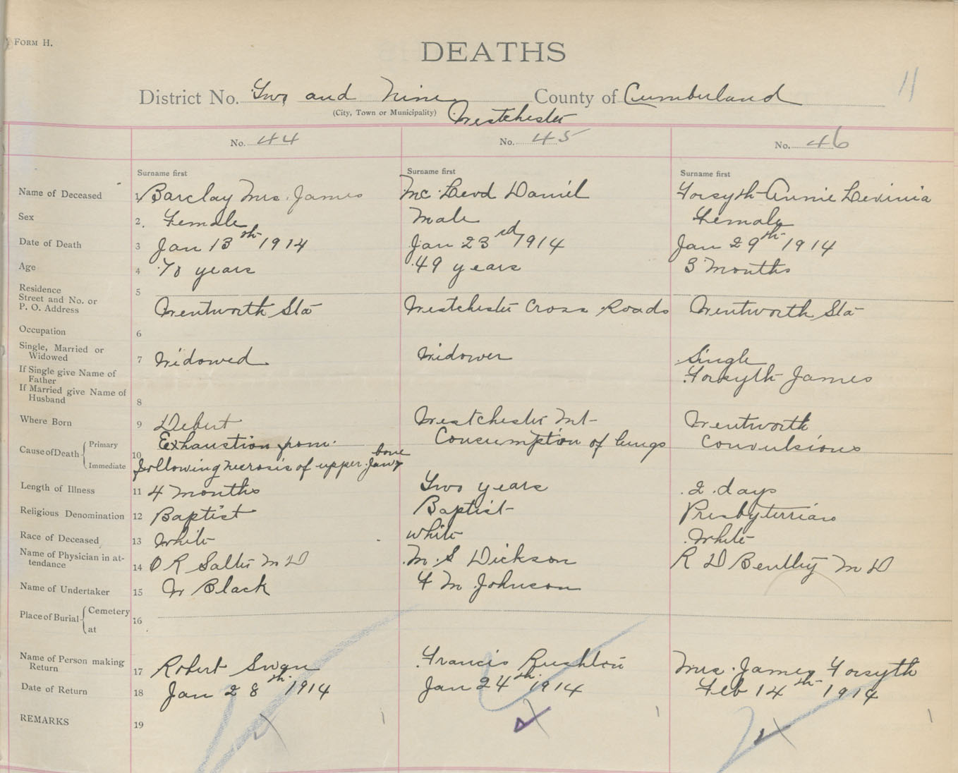 Female Death Registration: Year: 1914 book: 41 page: 11 number: 46
