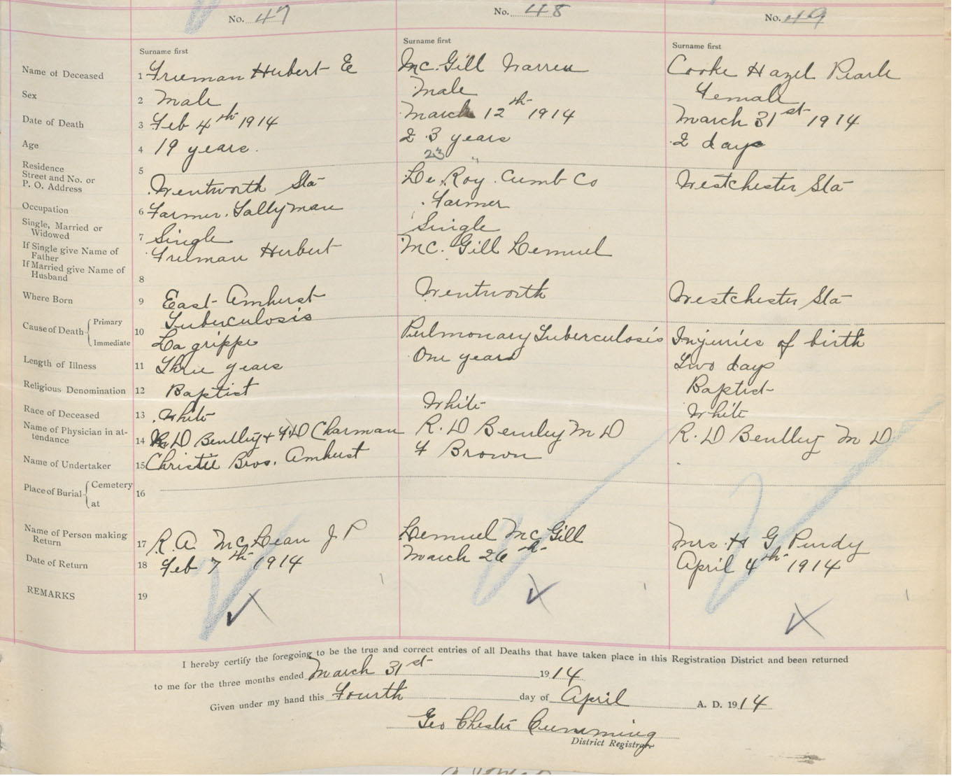 Female Death Registration: Year: 1914 book: 41 page: 11 number: 49