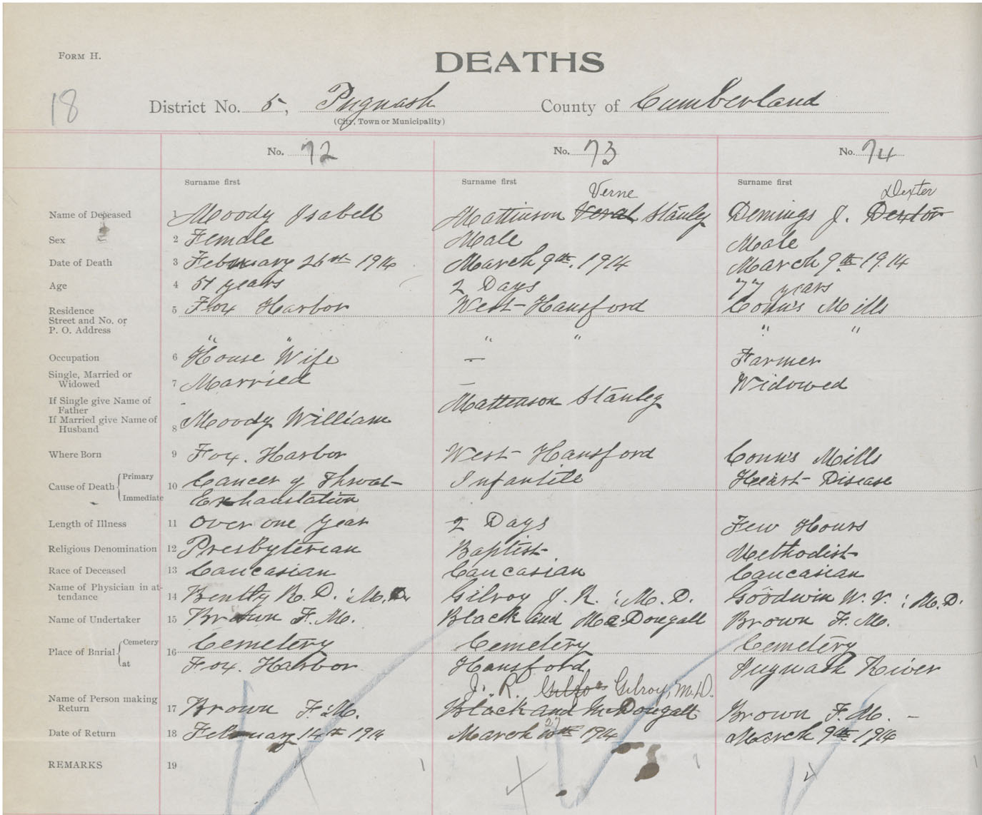 Male Death Registration: Year: 1914 book: 41 page: 18 number: 74
