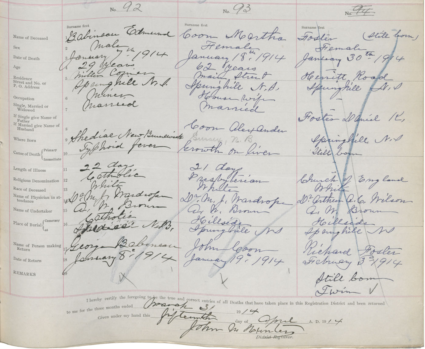 Female Death Registration: Year: 1914 book: 41 page: 23 number: 93