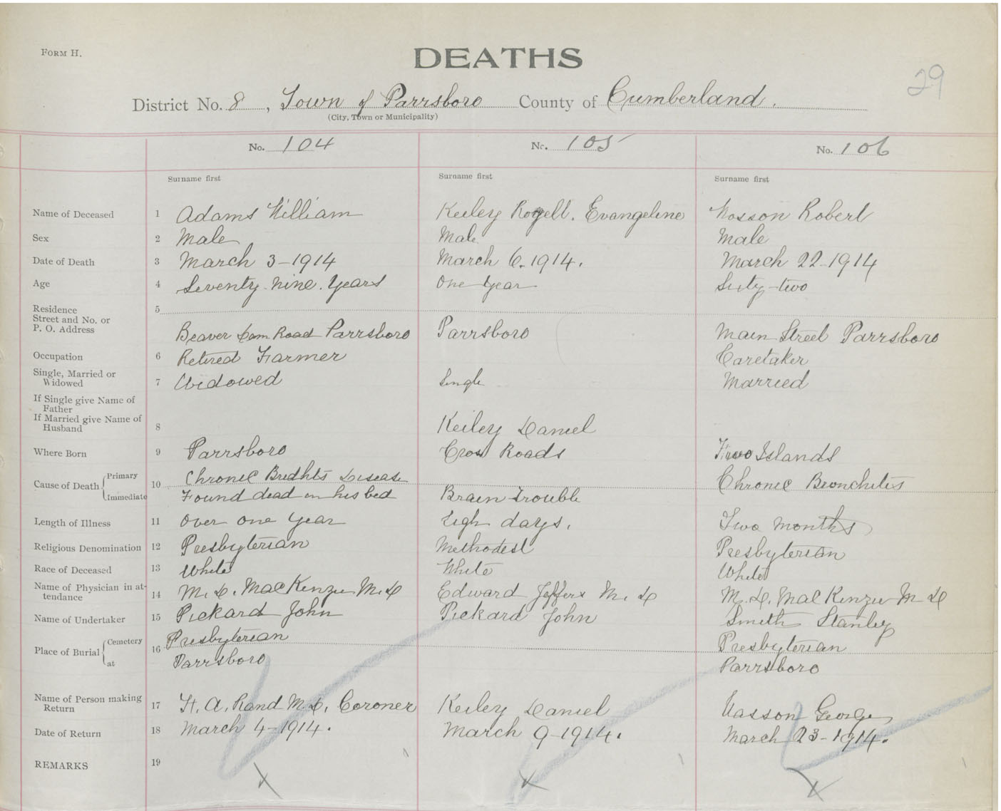 Male Death Registration: Year: 1914 book: 41 page: 29 number: 106