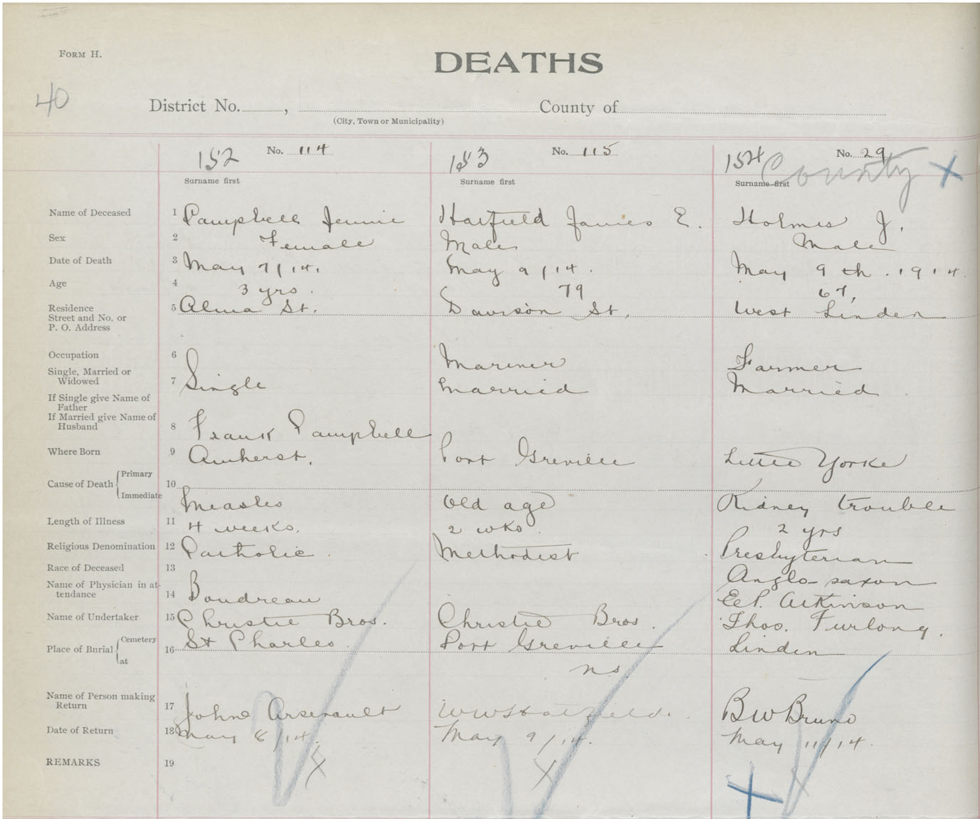 Male Death Registration: Year: 1914 book: 41 page: 40 number: 154