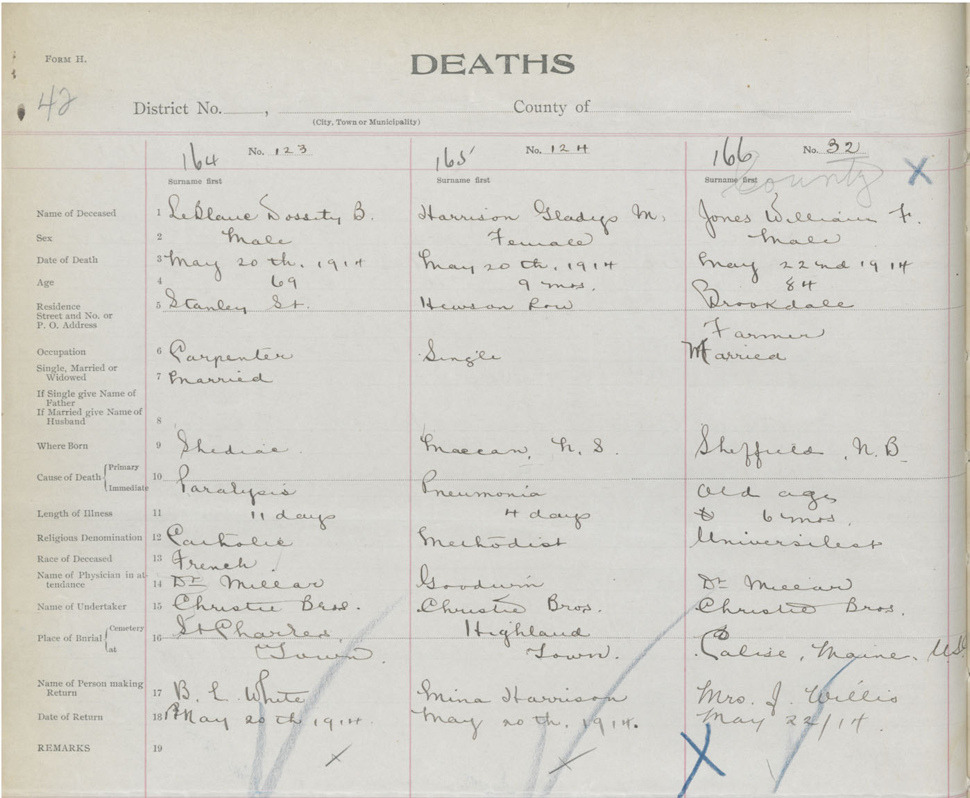 Male Death Registration: Year: 1914 book: 41 page: 42 number: 166