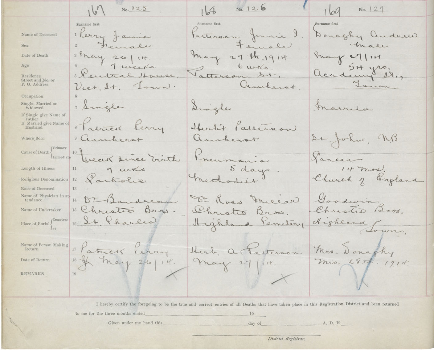 Male Death Registration: Year: 1914 book: 41 page: 42 number: 169