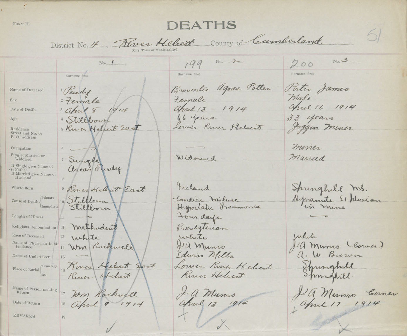 Male Death Registration: Year: 1914 book: 41 page: 51 number: 200