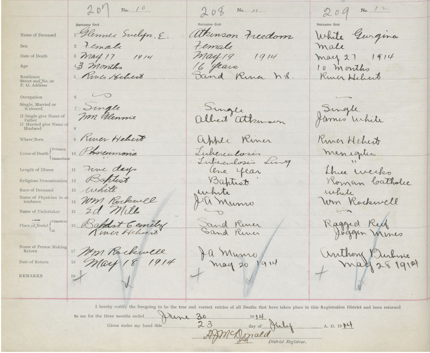 Male Death Registration: Year: 1914 book: 41 page: 52 number: 209