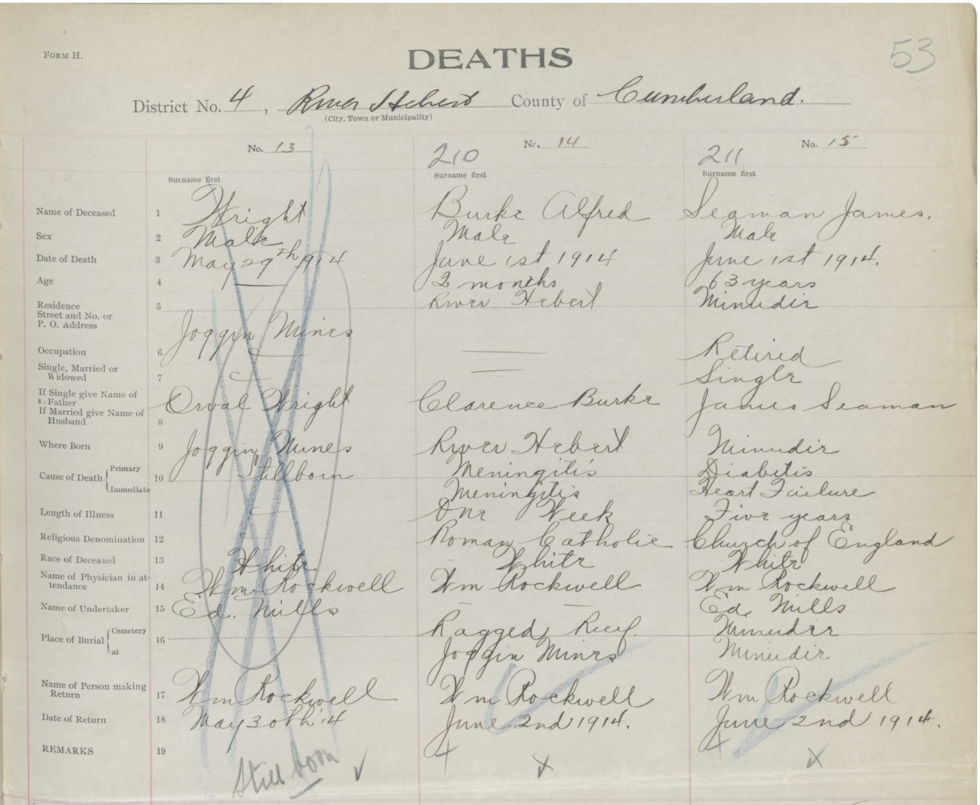 Male Death Registration: Year: 1914 book: 41 page: 53 number: 211