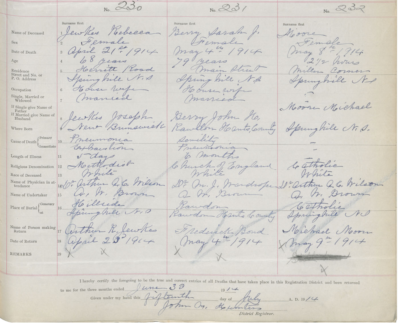 Female Death Registration: Year: 1914 book: 41 page: 59 number: 232