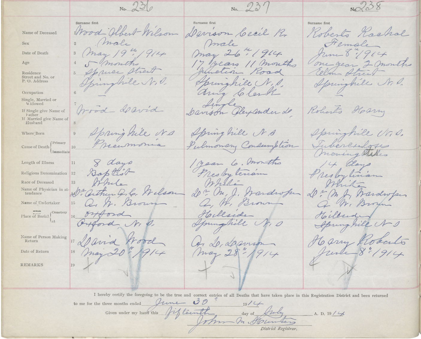 Female Death Registration: Year: 1914 book: 41 page: 60 number: 238