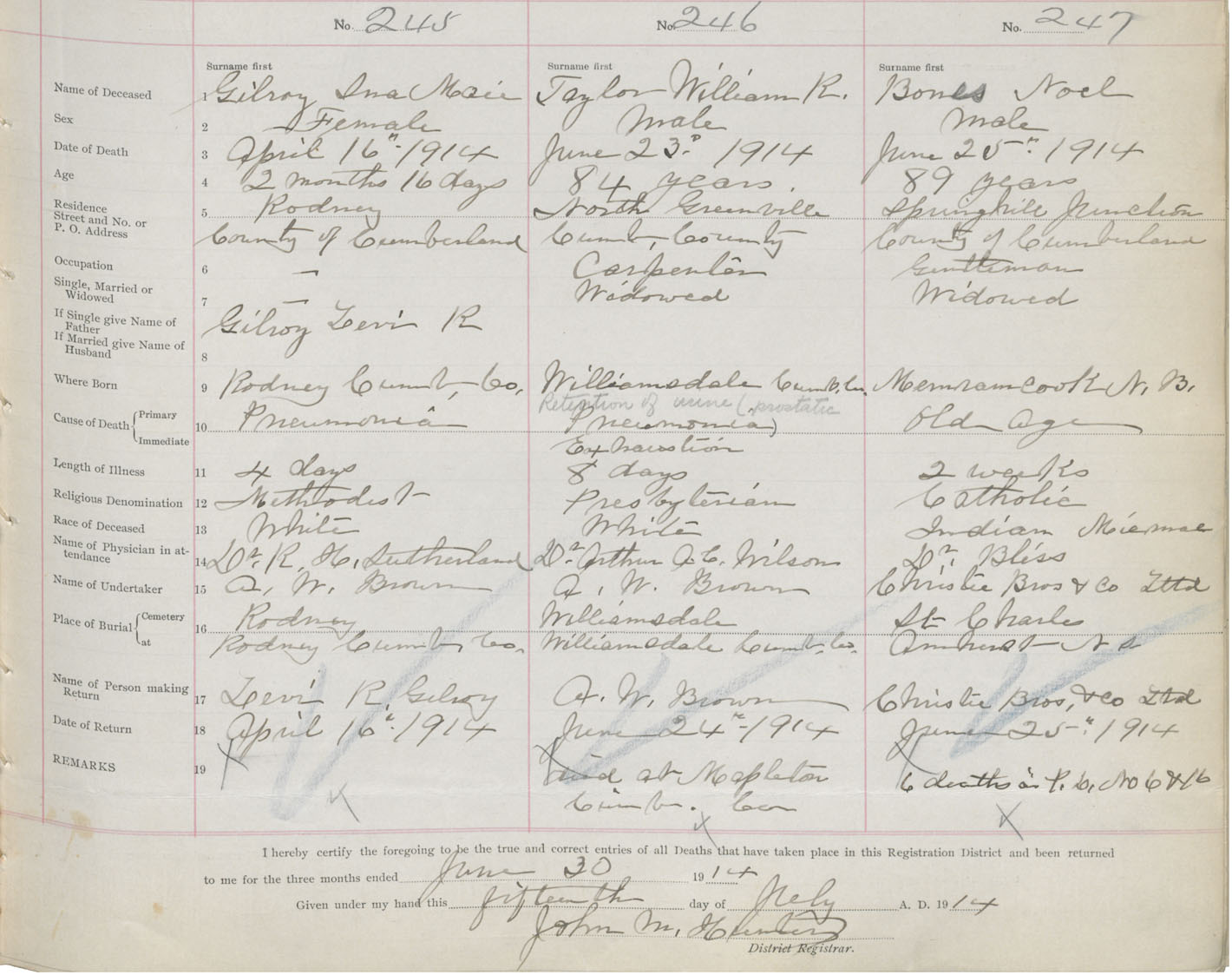 Male Death Registration: Year: 1914 book: 41 page: 63 number: 247