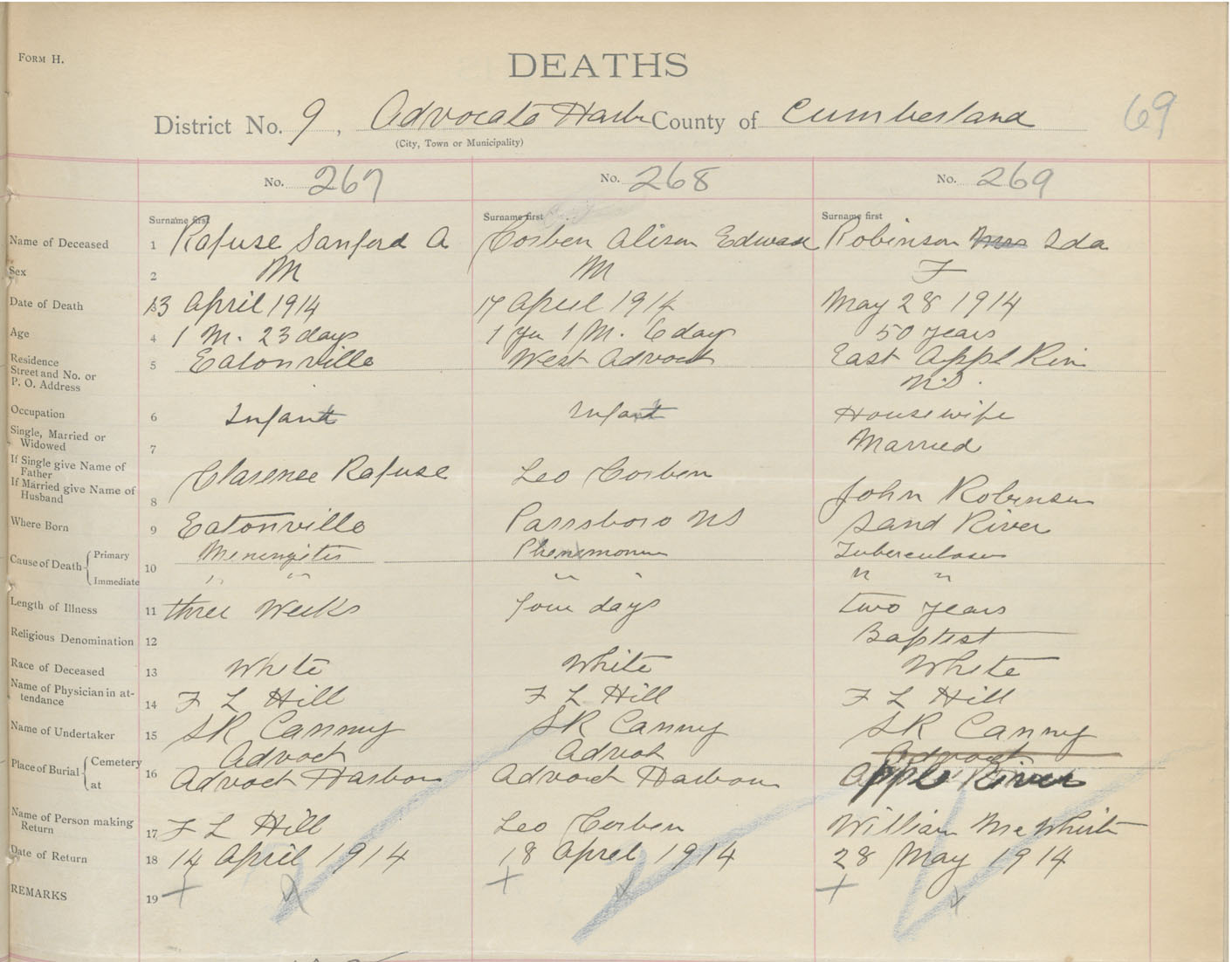 Female Death Registration: Year: 1914 book: 41 page: 69 number: 269