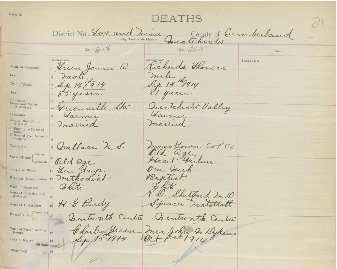 Male Death Registration: Year: 1914 book: 41 page: 81 number: 318