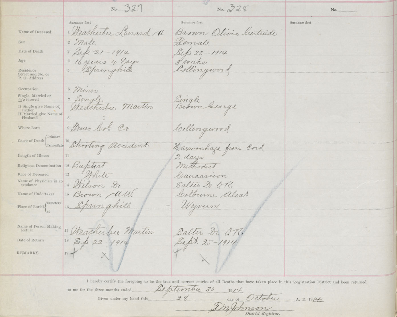 Male Death Registration: Year: 1914 book: 41 page: 84 number: 327