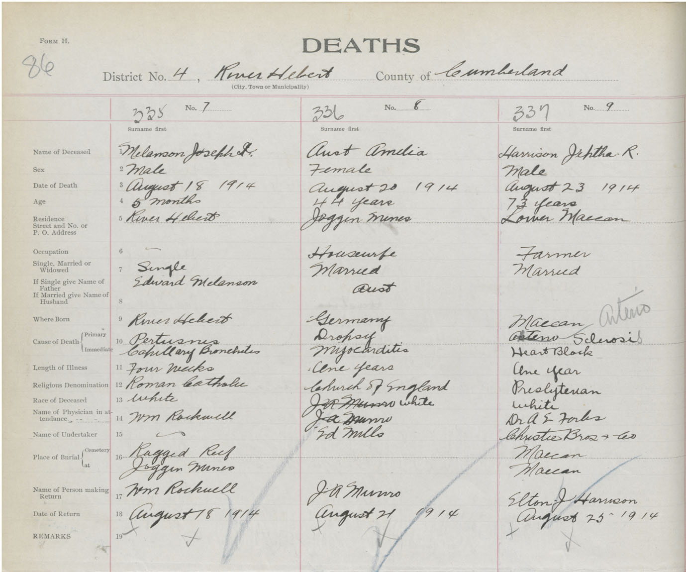 Male Death Registration: Year: 1914 book: 41 page: 86 number: 335