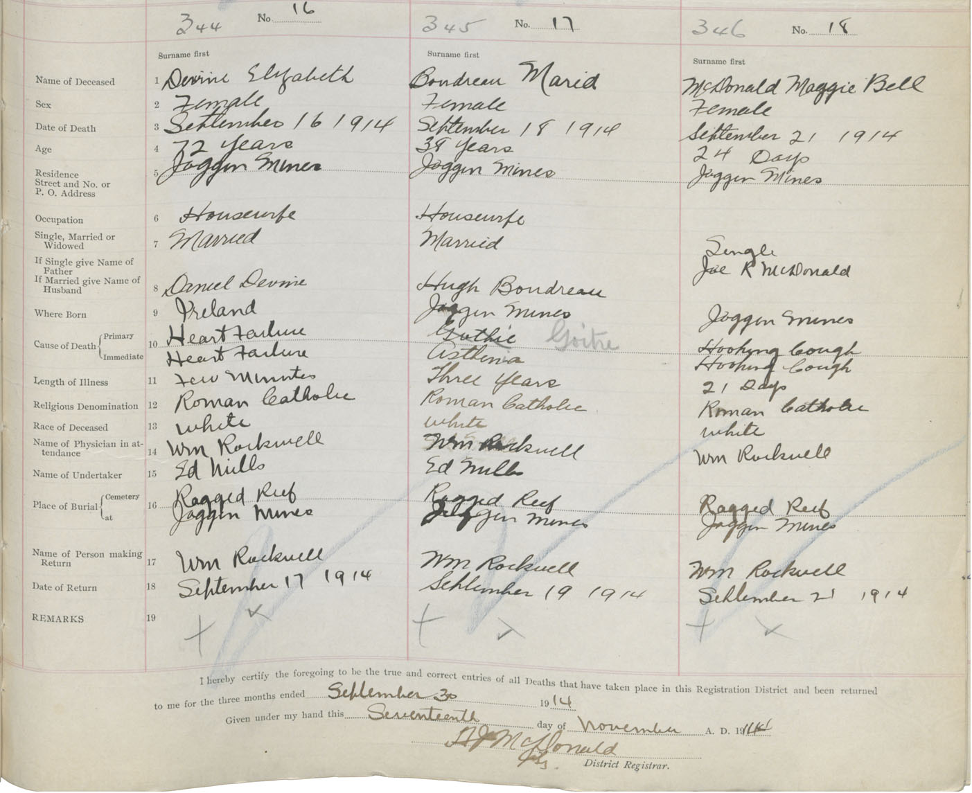 Female Death Registration: Year: 1914 book: 41 page: 87 number: 344