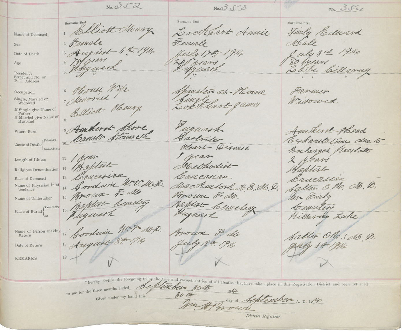 Female Death Registration: Year: 1914 book: 41 page: 89 number: 352