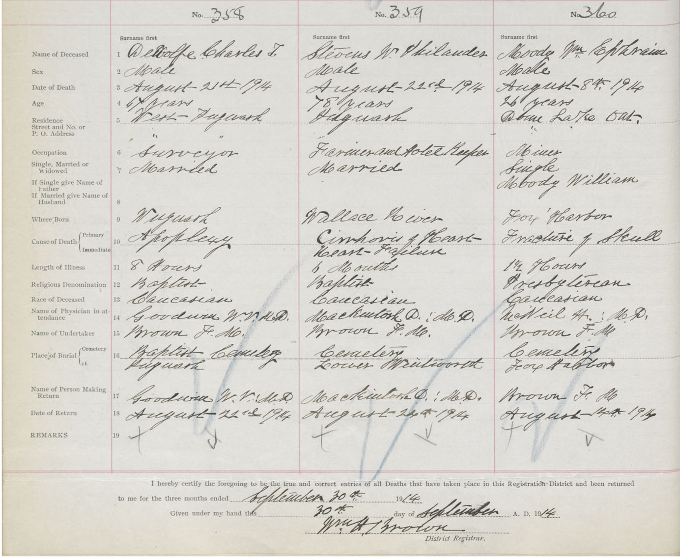 Male Death Registration: Year: 1914 book: 41 page: 90 number: 358