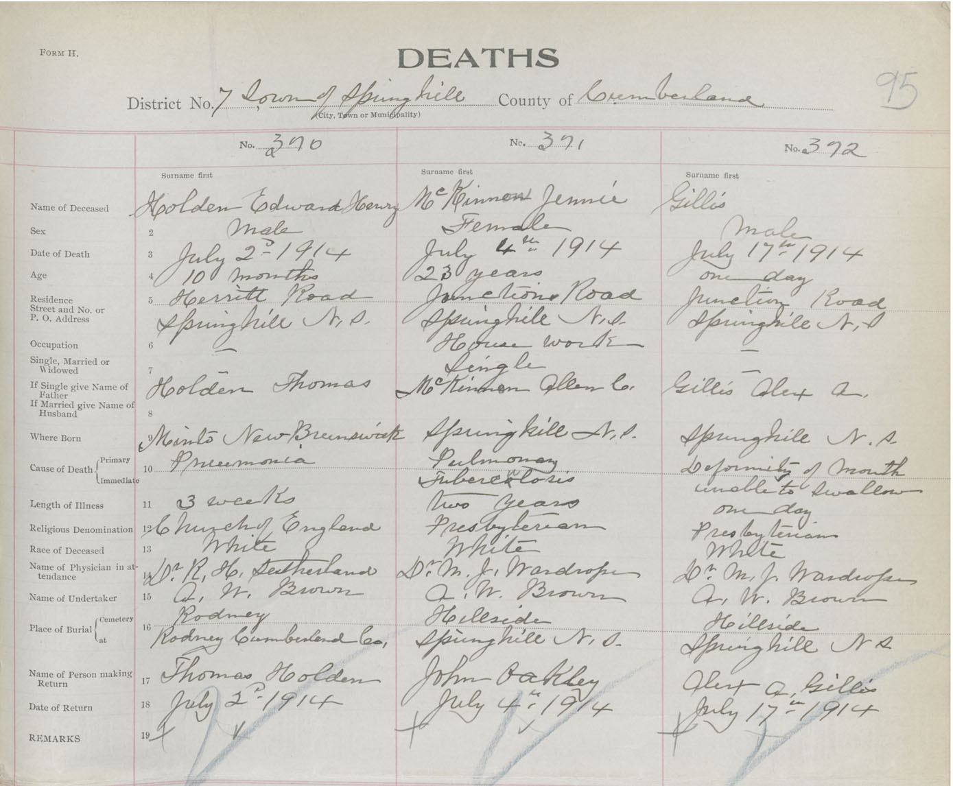 Male Death Registration: Year: 1914 book: 41 page: 95 number: 370