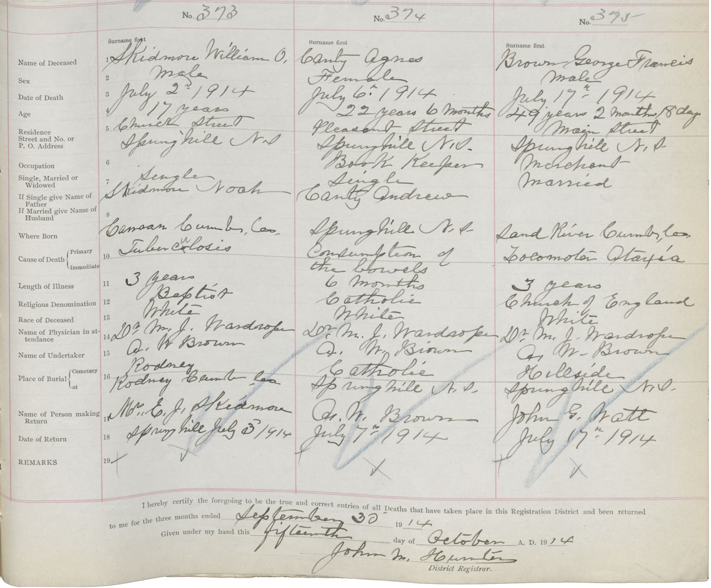 Male Death Registration: Year: 1914 book: 41 page: 95 number: 373