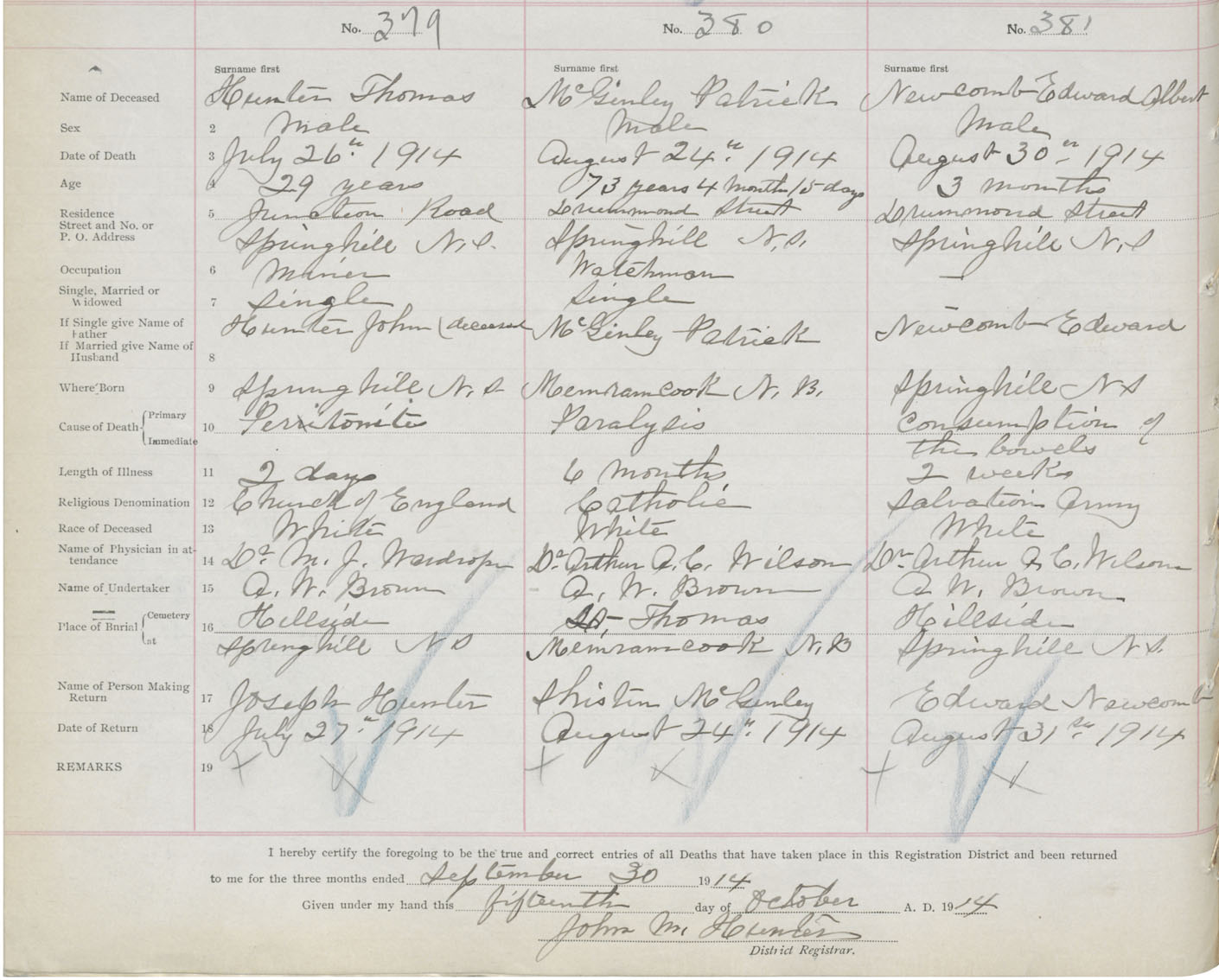 Male Death Registration: Year: 1914 book: 41 page: 96 number: 379