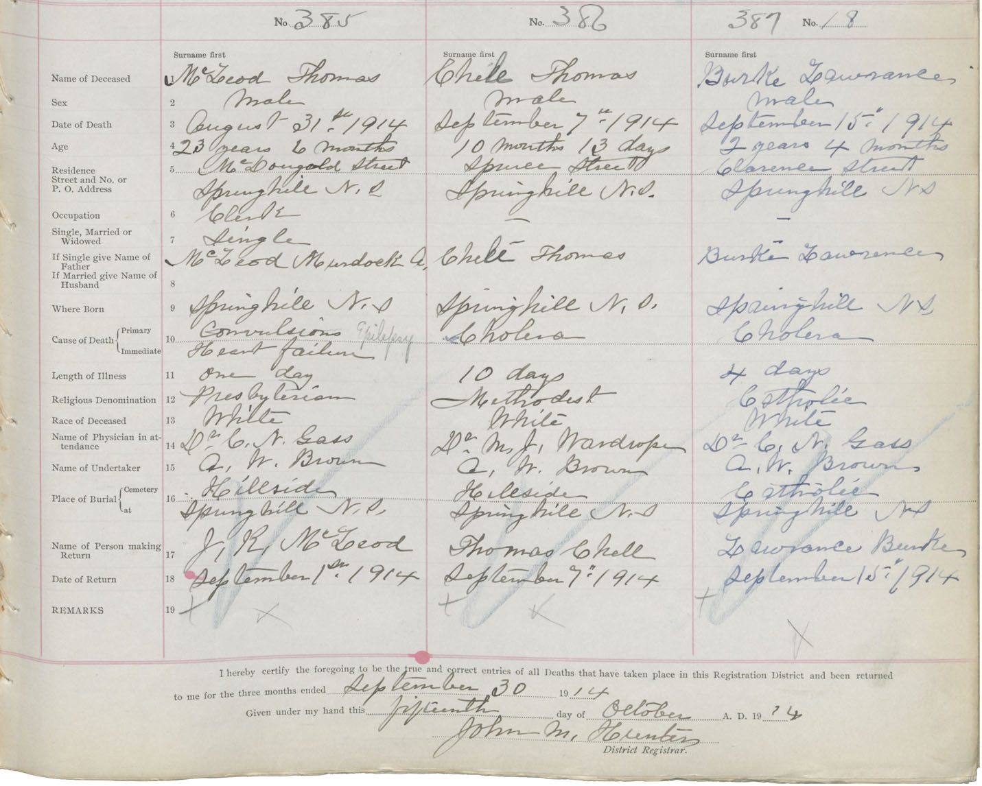 Male Death Registration: Year: 1914 book: 41 page: 97 number: 385