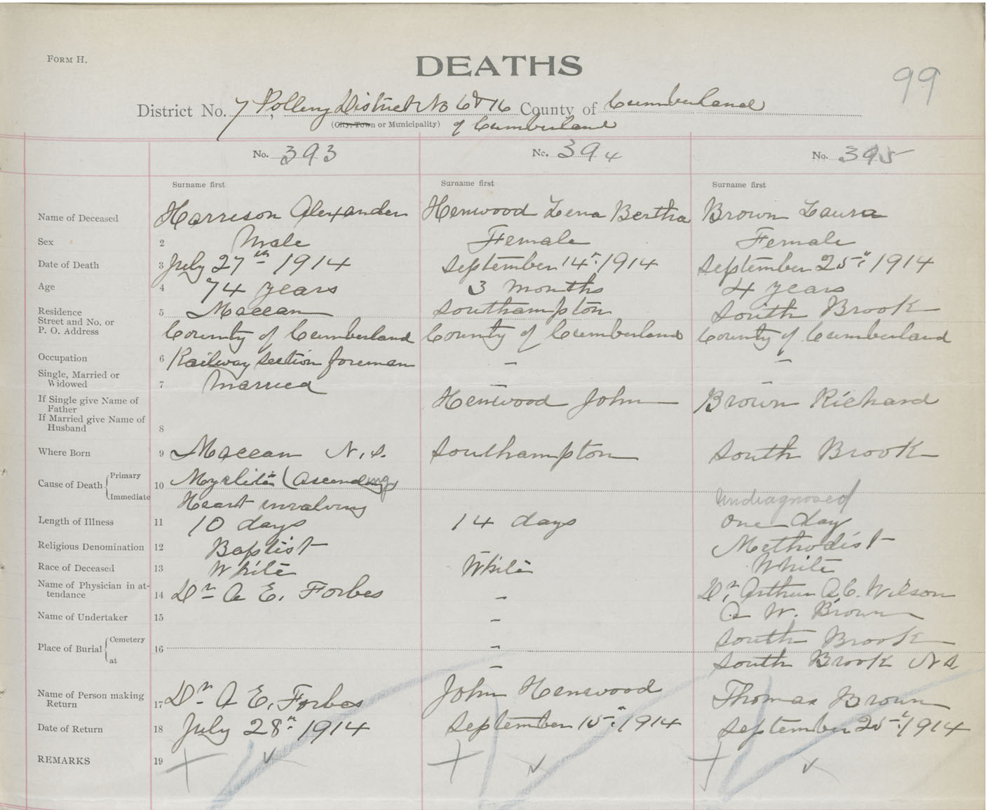 Male Death Registration: Year: 1914 book: 41 page: 99 number: 393