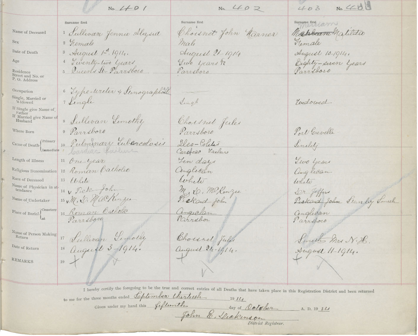 Female Death Registration: Year: 1914 book: 41 page: 101 number: 401