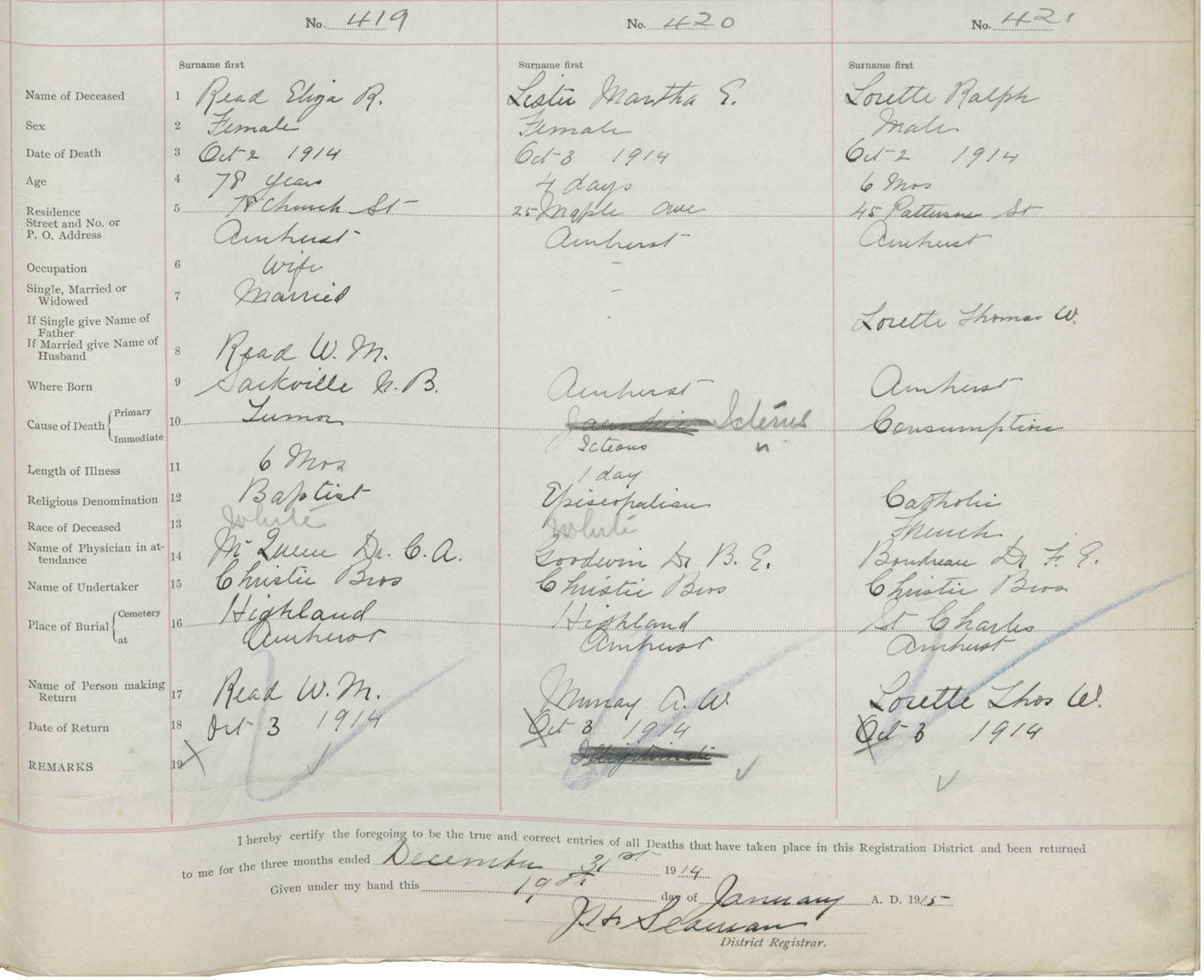 Female Death Registration: Year: 1914 book: 41 page: 107 number: 419