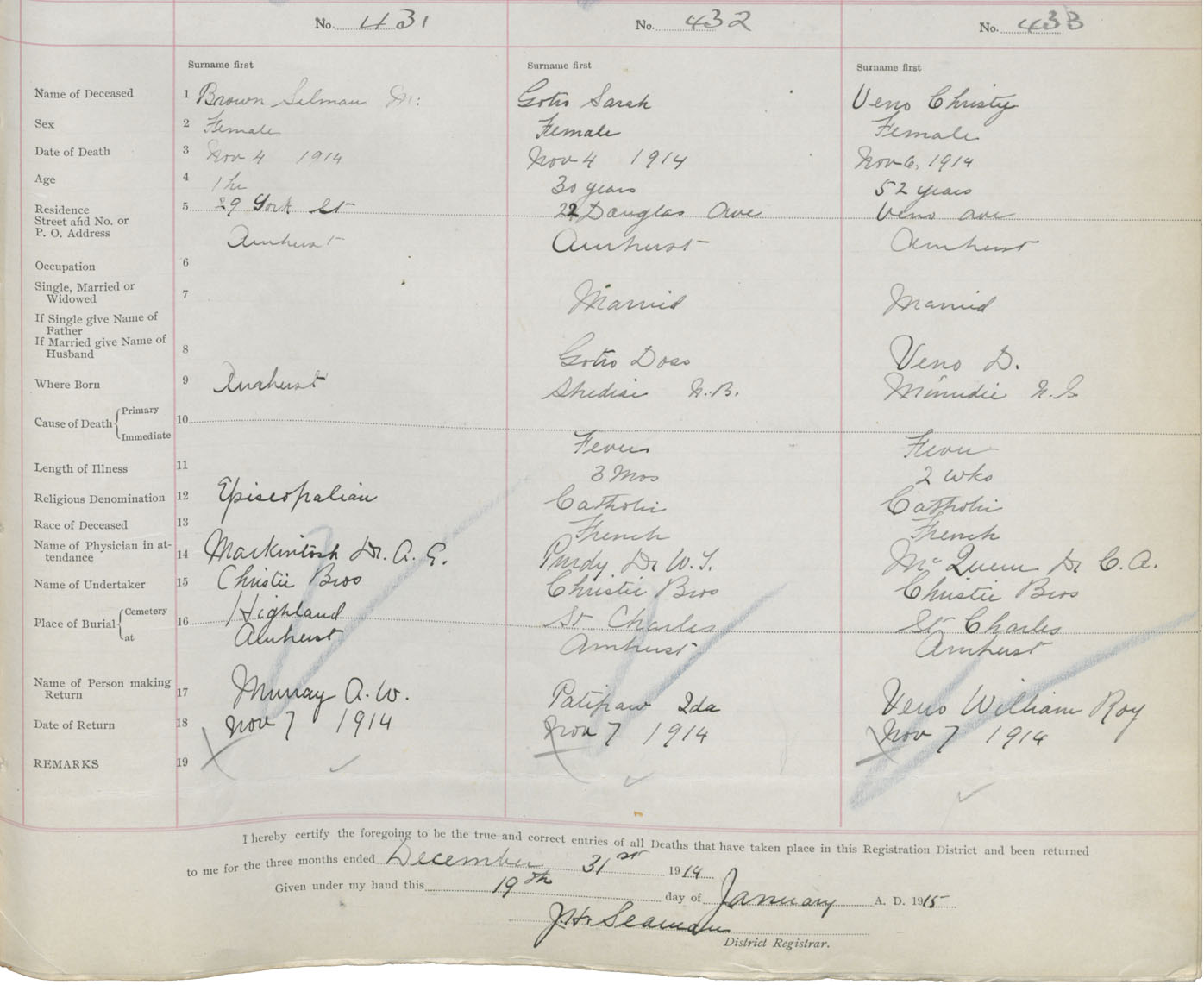 Female Death Registration: Year: 1914 book: 41 page: 109 number: 431