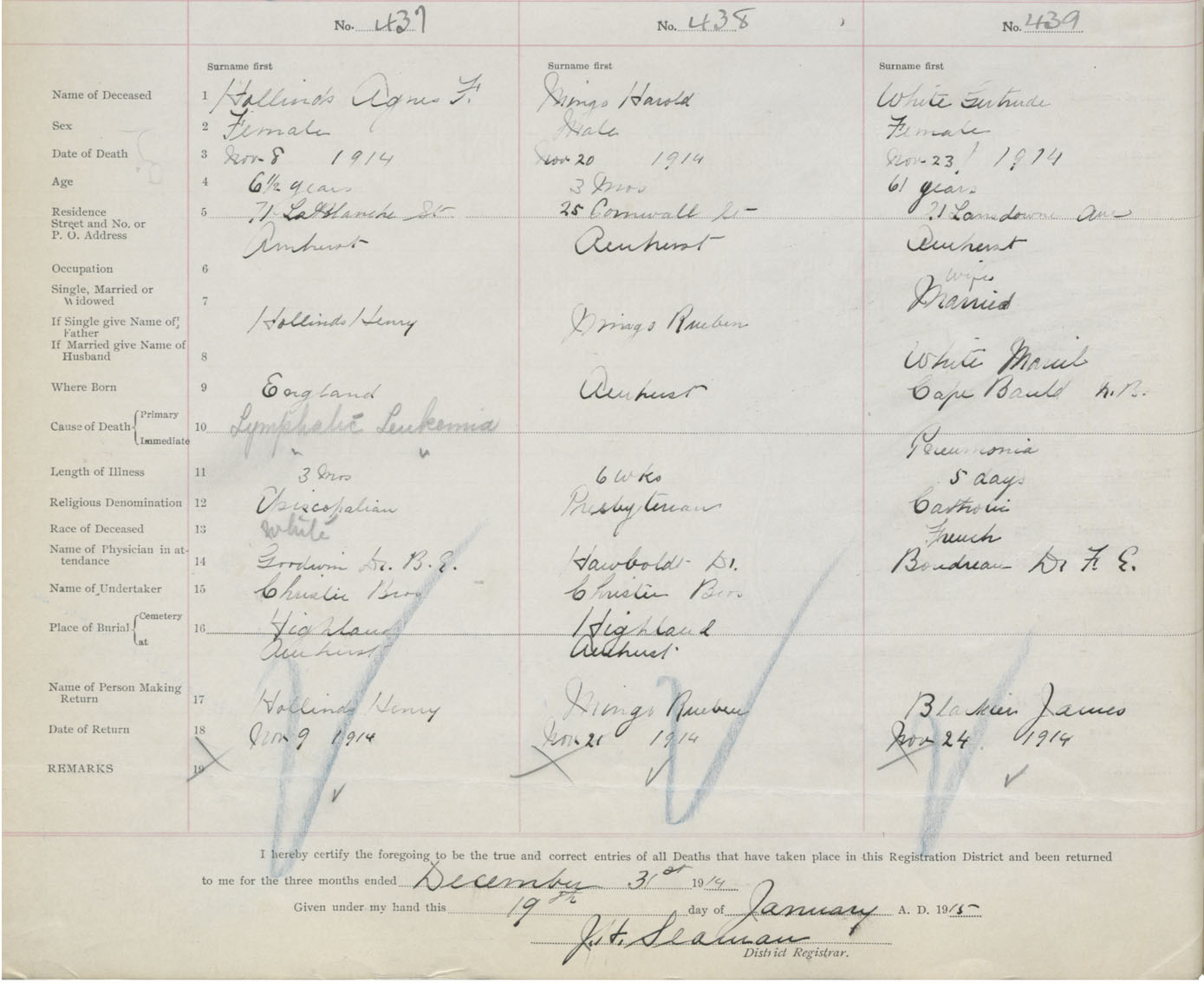 Female Death Registration: Year: 1914 book: 41 page: 110 number: 437