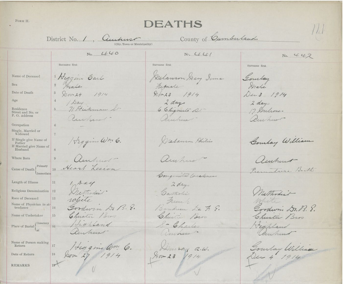 Male Death Registration: Year: 1914 book: 41 page: 111 number: 440