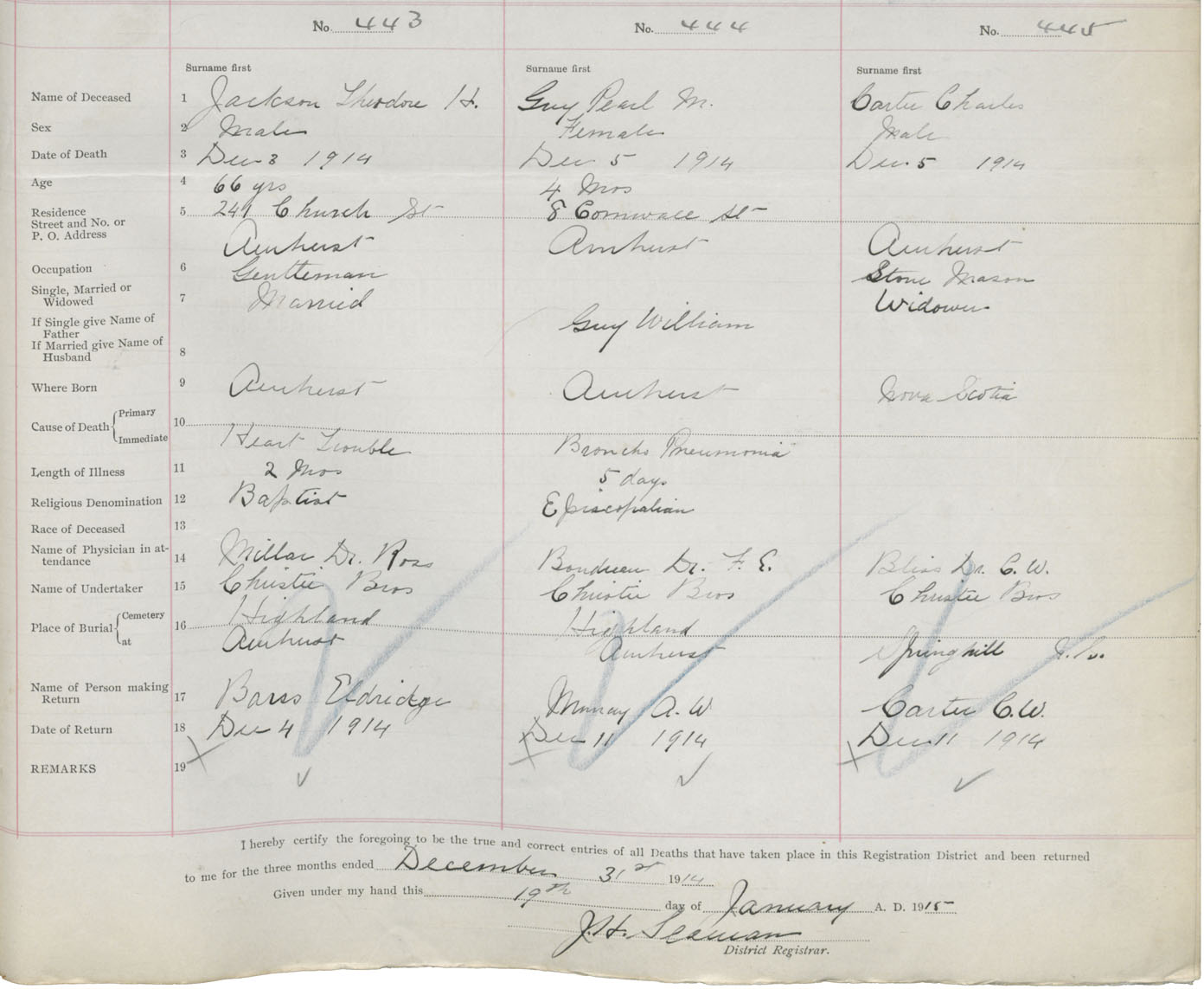 Male Death Registration: Year: 1914 book: 41 page: 111 number: 443