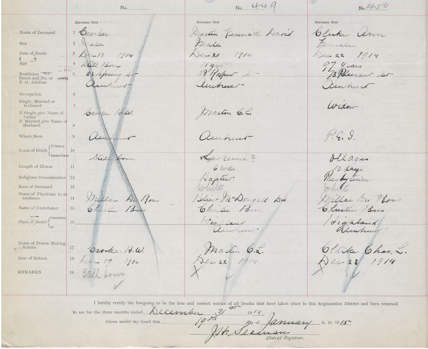 Male Death Registration: Year: 1914 book: 41 page: 112 number: 449