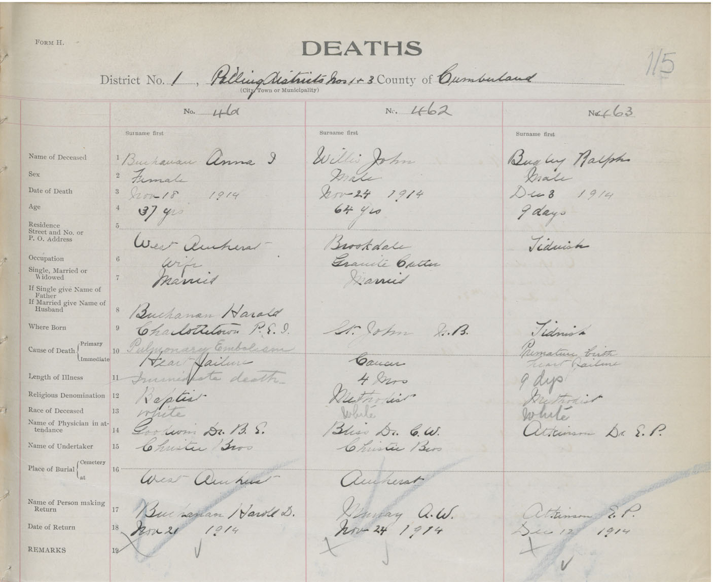 Female Death Registration: Year: 1914 book: 41 page: 115 number: 461