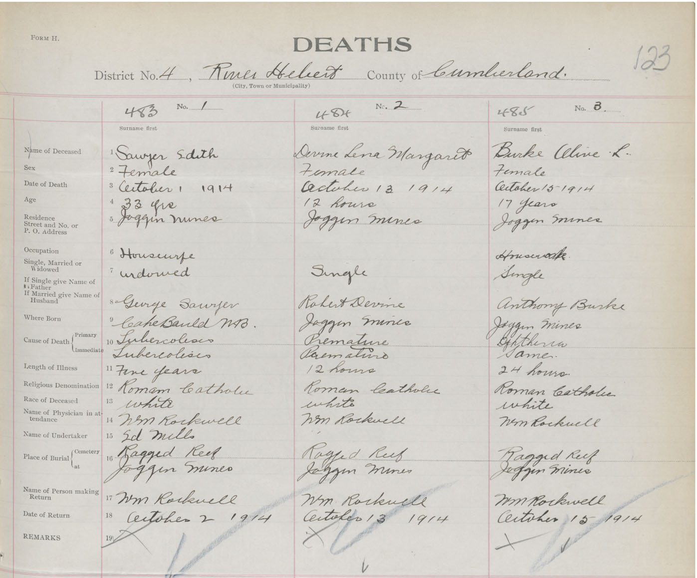 Female Death Registration: Year: 1914 book: 41 page: 123 number: 483