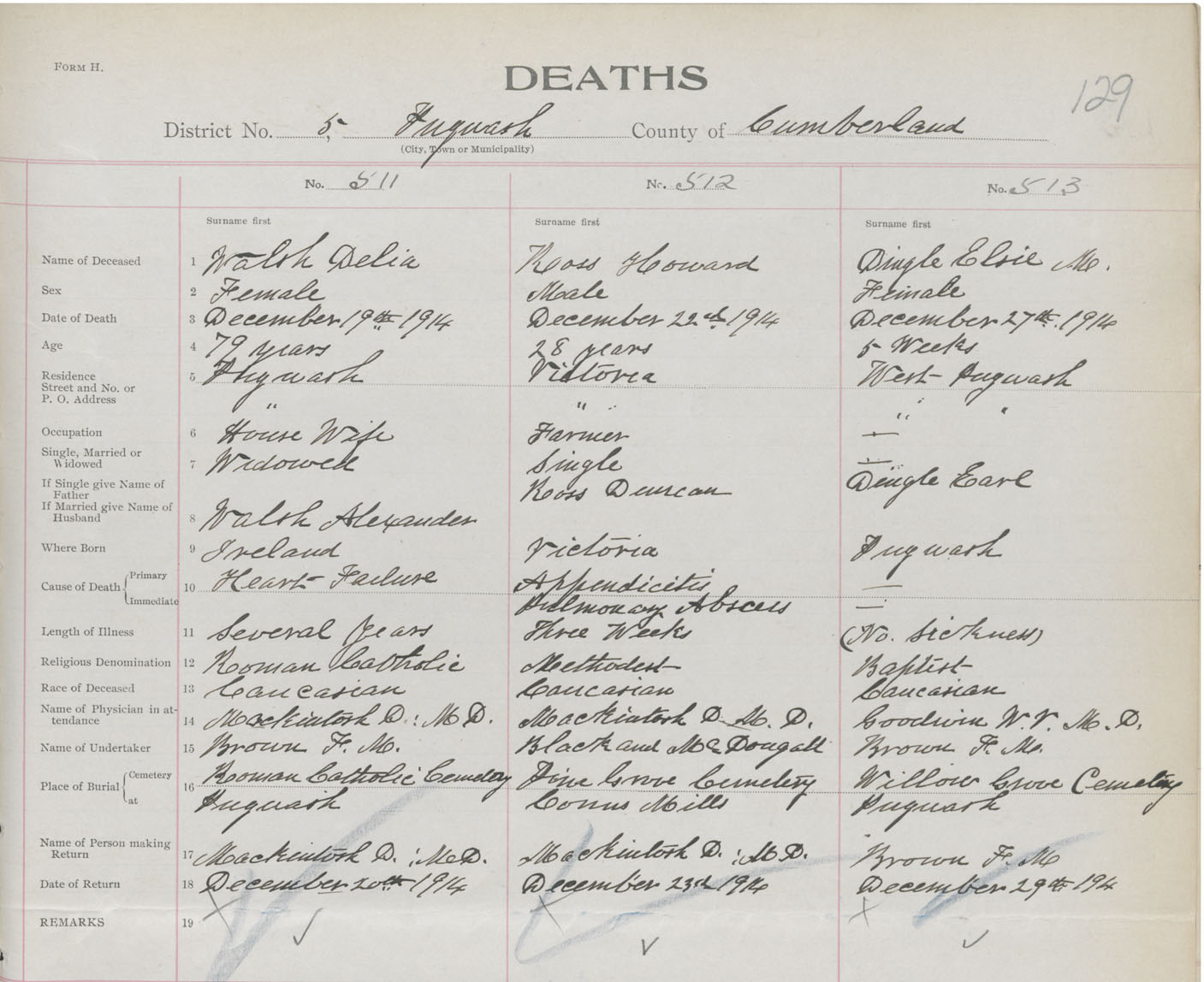 Female Death Registration: Year: 1914 book: 41 page: 129 number: 511