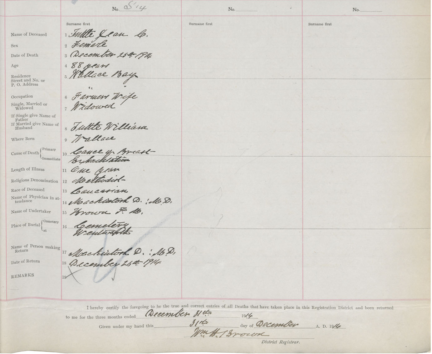 Female Death Registration: Year: 1914 book: 41 page: 129 number: 514