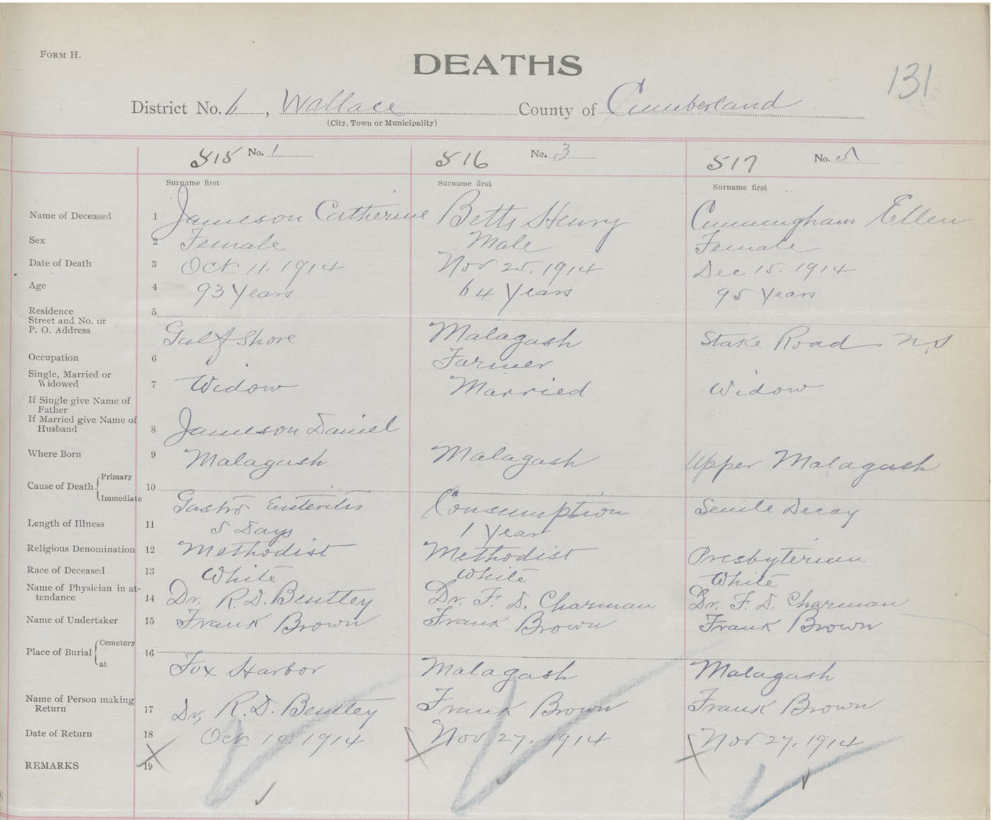 Female Death Registration: Year: 1914 book: 41 page: 131 number: 515