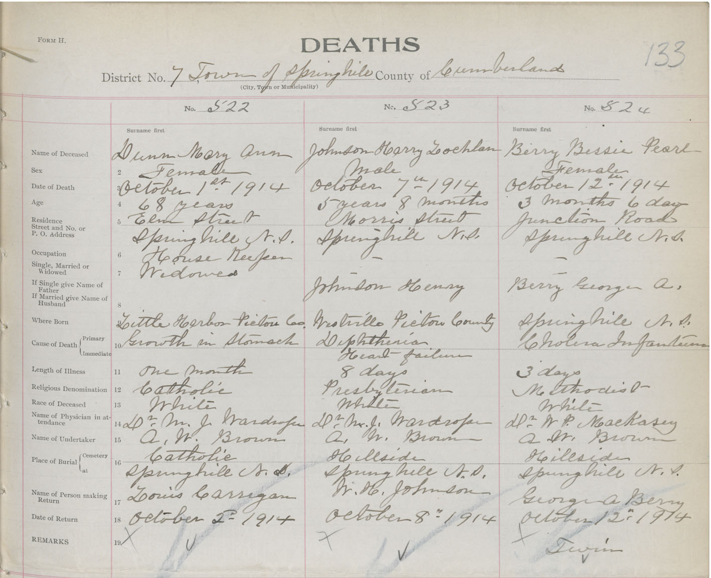 Female Death Registration: Year: 1914 book: 41 page: 133 number: 522