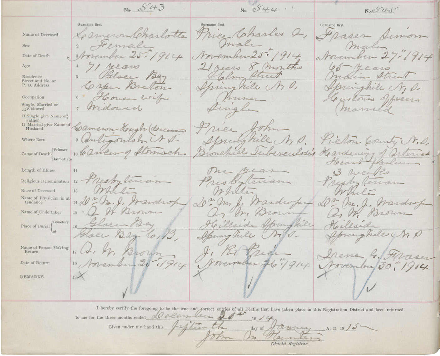 Female Death Registration: Year: 1914 book: 41 page: 136 number: 543