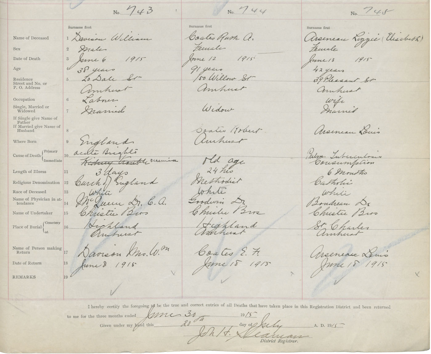 Female Death Registration: Year: 1915 book: 41 page: 185 number: 745
