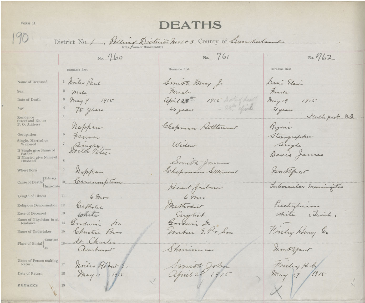 Female Death Registration: Year: 1915 book: 41 page: 190 number: 762