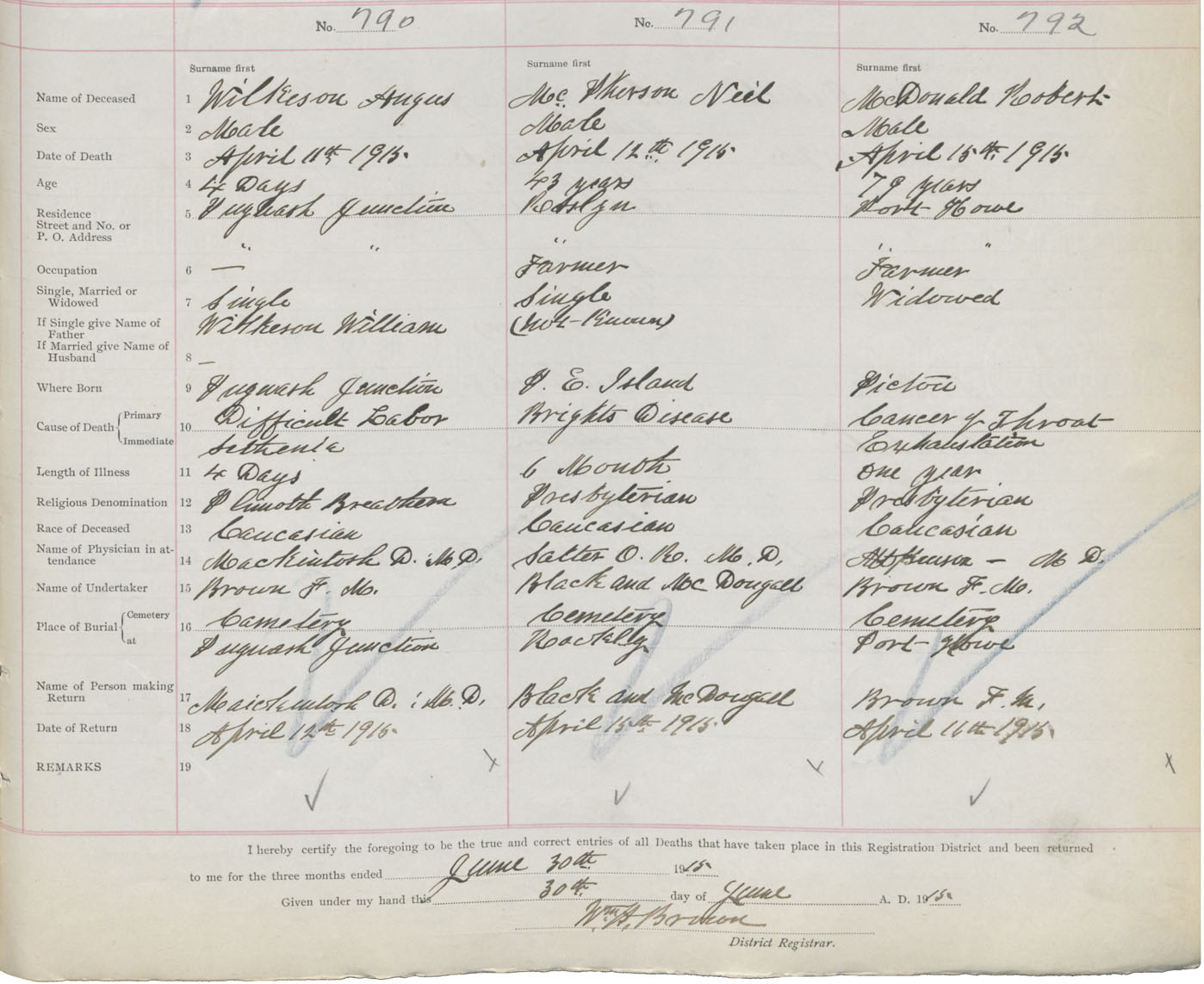 Male Death Registration: Year: 1915 book: 41 page: 199 number: 792