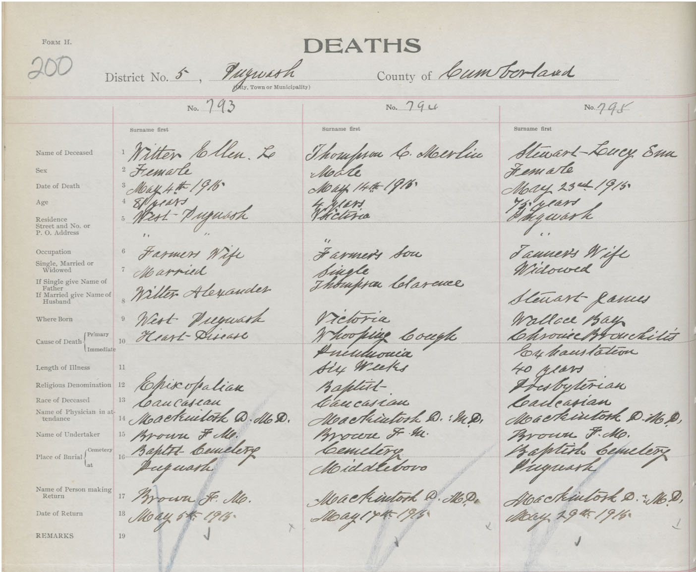 Female Death Registration: Year: 1915 book: 41 page: 200 number: 795