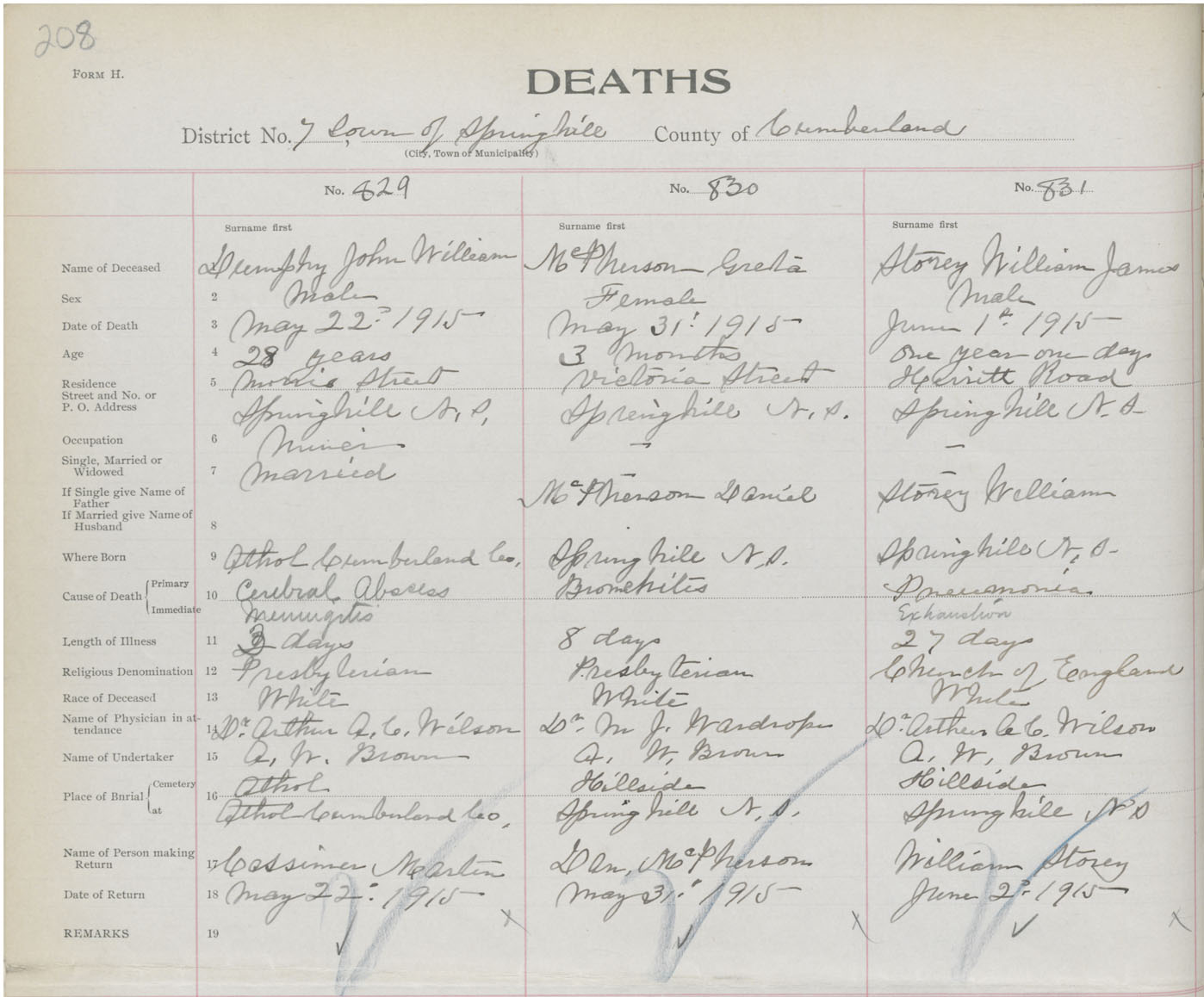 Male Death Registration: Year: 1915 book: 41 page: 208 number: 831