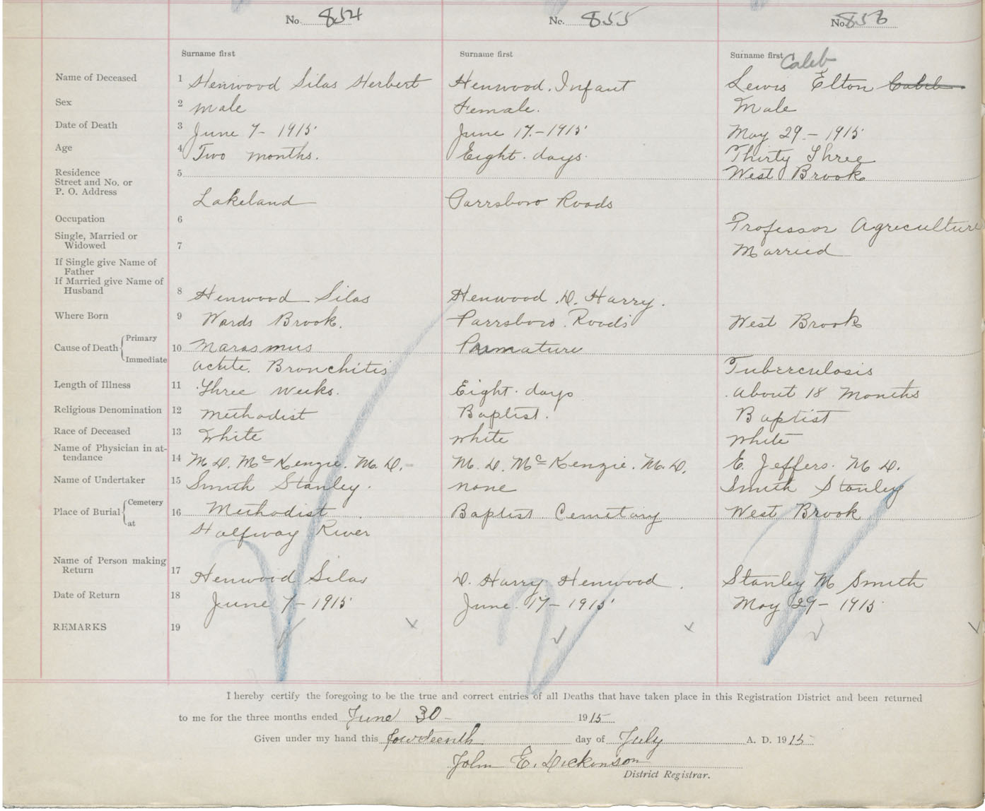 Male Death Registration: Year: 1915 book: 41 page: 216 number: 856